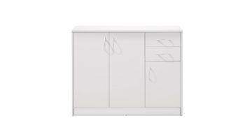 Kombikommode Bega-consult aus Holz in Weiß Kombikommode als Wohnzimmermöbel weiße Kunststoffoberflächen – drei Türen, zwei Schubladen