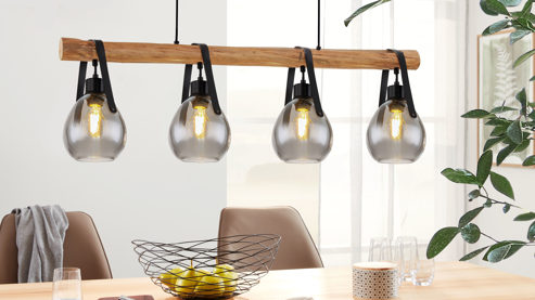 Neben dem attraktiven Design überzeugen auch die praktischen Aspekte. Da die Hängelampe ohne Leuchtmittel geliefert wird, können Sie Letztere jederzeit austauschen, was sich positiv auf die Lebensdauer der gesamten Lampe auswirkt. Darüber hinaus haben Sie freie Wahl in Bezug auf die Energieeffizienzklasse. Sie benötigen vier jeweils maximal 60 Watt starke Leuchtmittel mit E27-Sockel.