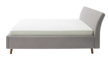 Pure Eleganz bringt das Polsterbettgestell Mila in Ihr Schlafzimmer. Die eichefarbenen Füße wirken filigran und verleihen diesem Modell eine luftig leichte Ausstrahlung. Ausgestattet ist das schicke Bett mit dem Bezug Capri 4150 aus hellgrauem Flachgewebe.