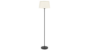 weißer Stoff-Lampenschirm kombiniert mit schwarzem Stahl-Fuß
