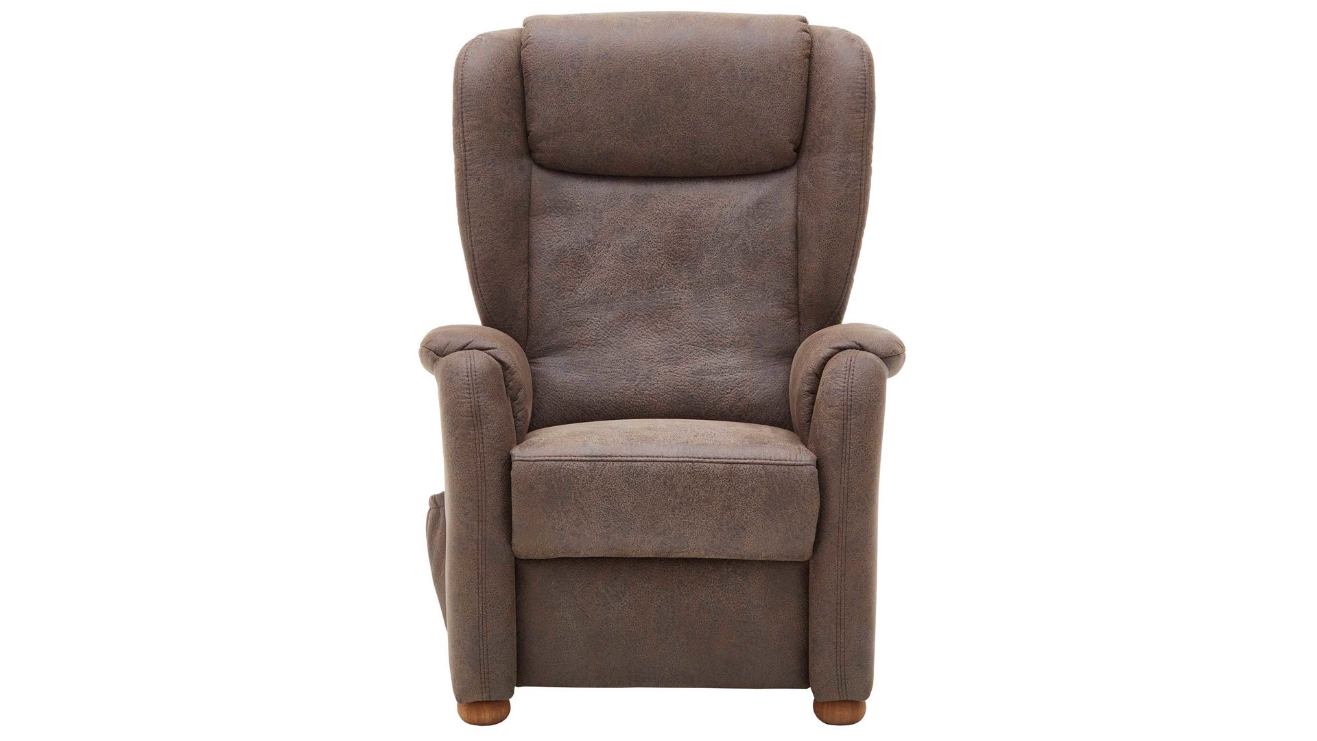 Dieser Ohrensessel kombiniert geölte Eichenholz-Kugelfüße mit einem klassisch-braunen Stoffbezug. Durch die harmonisch aufeinander abgestimmten Materialien und Farben strahlt der TV-Sessel Eleganz im Landhaus-Stil aus. Die nötige Stabilität gewährleistet das Holzgrundgestell. Es macht den Sessel bis 110 kg belastbar. Die Maße des erstklassig verarbeiteten Komfortsessels belaufen sich auf ca. 85 x 115 x 84 cm (BxHxT), bei einer Sitzhöhe von ca. 46 cm und einer Sitztiefe von ca. 53 cm.