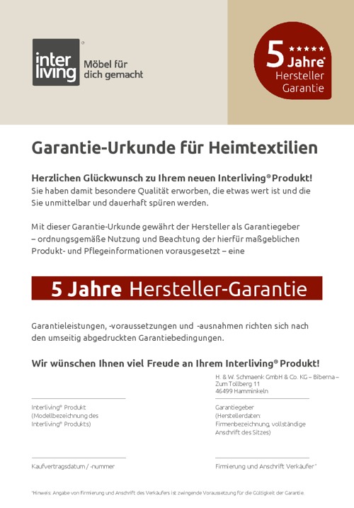 Die Interliving Bettwäsche Serie 9118 wird in Deutschland hergestellt und steht für höchste Material- und Verarbeitungsqualität. Mit der vom Hersteller gewährten 5 Jahre Herstellergarantie genießt du langlebige Qualität und ein wunderbar wohliges Schlafgefühl – Nacht für Nacht.