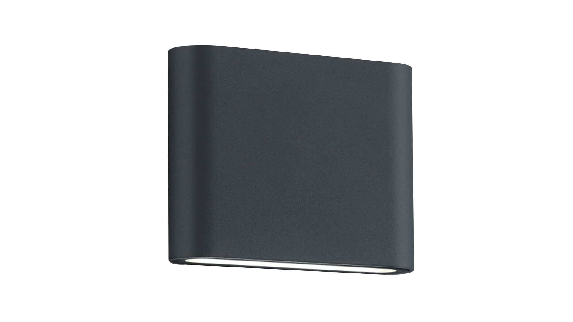 Die LED-Außen-Wandleuchte gewährleistet eine Up-and-down-Beleuchtung, lässt sich jedoch extern nicht dimmen. Ihre Maße belaufen sich auf ca. 12 x 9 x 3 cm (BxHxT). Die Ausführung ist alternativ auch in Weiß bestellbar.