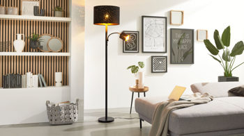 Für diese attraktive Ständerleuchte benötigen Sie ein E27-Leuchtmittel mit maximal 40 Watt und ein E14-Leuchtmittel mit maximal 25 Watt. Zum Ein- und Ausschalten nutzen Sie einfach den praktischen Kippschalter.