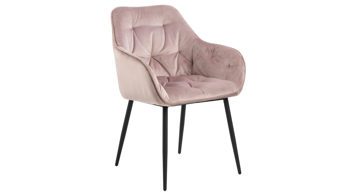 Dabei harmoniert der Polsterstuhl in seiner sanften Formensprache mit zahlreichen Einrichtungsstilen. Moderne Geradlinigkeit ergänzt er ebenso stimmig wie den beliebten Vintage-Trend. Auch farblich erlaubt der Esszimmerstuhl Brooke angenehme Freiheit beim Kombinieren: Dafür sorgt der Samtbezug in Pastellrosa, der die gesamte Sitzschale inklusive der bequemen Armlehnen weich umhüllt. Die rau pulverbeschichteten Metallfüße fließen in mattem Schwarz stimmig in das Gesamtbild ein.