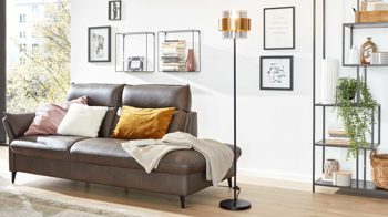 Die Stehleuchte 155600SIL aus der Interliving Leuchten Serie 9333 verbindet modernes Design mit extravaganten Akzenten und bringt stilvolle Eleganz in Ihre Wohnräume. Das Gestell aus klassisch mattschwarzem Metall trifft auf einen rauchfarbenen Glasschirm, der von einem gebürsteten messingfarbenen Metallring eingerahmt wird – ein edles Detail, das die Stehlampe zu einem besonderen Highlight im Wohn-, Schlaf- oder Arbeitszimmer macht.