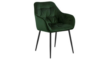 Dabei harmoniert der Polsterstuhl in seiner sanften Formensprache mit zahlreichen Einrichtungsstilen. Moderne Geradlinigkeit ergänzt er ebenso stimmig wie den beliebten Vintage-Trend. Auch farblich erlaubt der Esszimmerstuhl Brooke angenehme Freiheit beim Kombinieren: Dafür sorgt der waldgrüne Bezug Vic aus Samt, der die gesamte Sitzschale inklusive der bequemen Armlehnen weich umhüllt. Die rau pulverbeschichteten Metallfüße fließen in mattem Schwarz stimmig in das Gesamtbild ein.