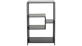 Während das Gestell aus schwarz pulverbeschichtetem Stahl besteht, sind die fünf Böden aus anthrazitfarben gefärbtem, 5 mm starken Sicherheitsglas gefertigt. Dank der hochwertigen Materialien ist das moderne Standregal enorm robust und stabil. Die Farben verleihen ihm eine betont elegante Ausstrahlung. Zudem begeistert die verspielte Formensprache mit der dennoch harmonischen Anordnung der einzelnen Abteilungen und Glasböden.