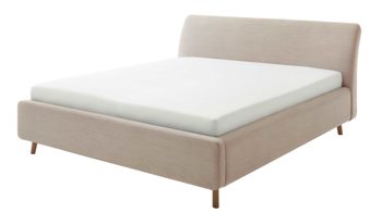 Pure Eleganz bringt das Polsterbettgestell Mila in Ihr Schlafzimmer. Die eichefarbenen Füße wirken filigran und verleihen diesem Modell eine luftig leichte Ausstrahlung. Ausgestattet ist das schicke Bett mit dem Bezug Capri 3723 aus beigem Flachgewebe.
