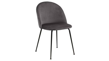 Dabei harmoniert der Polsterstuhl in seiner sanften Formensprache mit zahlreichen Einrichtungsstilen. Moderne Geradlinigkeit ergänzt er ebenso stimmig wie den beliebten Vintage-Trend. Auch farblich erlaubt der Esszimmerstuhl Louise angenehme Freiheit beim Kombinieren: Dafür sorgt der dunkelgraue Bezug Dublin 40 in Samtoptik, der sowohl die Sitzfläche als auch die Rückenlehne umhüllt. Auf der Rückseite setzt eine Harlekinsteppung einen charmanten Blickfang. Die rau pulverbeschichteten Metallfüße ergänzen das Gesamtbild in dezentem Schwarz.