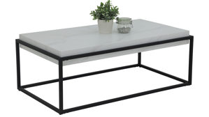 weiß lackierte MDF-Tischplatte in Marmoroptik