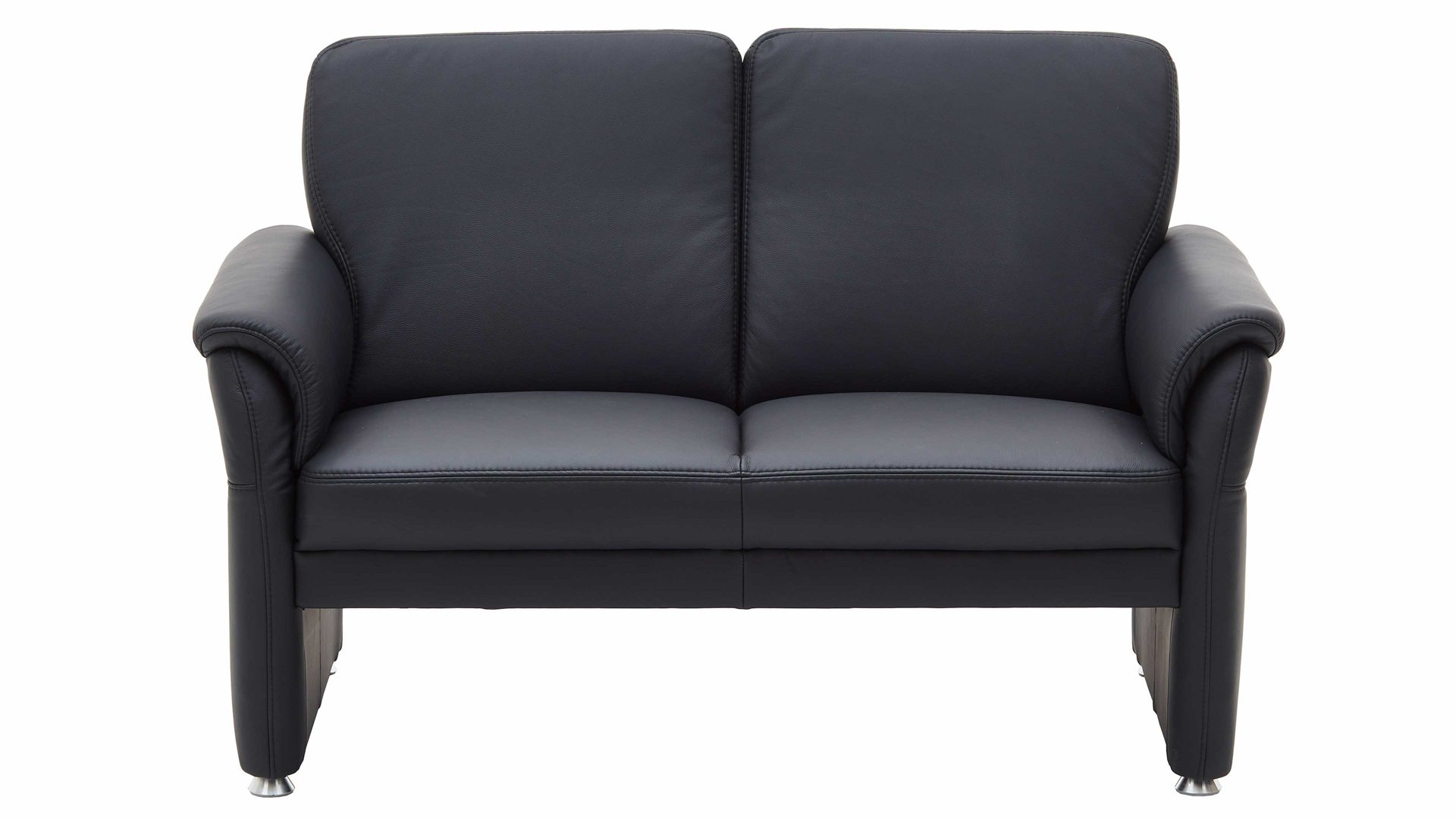 Mit den stabilen Aluminiumfüßen und dem klassisch-schwarzen Lederbezug strahlt dieser Zweisitzer moderne Eleganz aus. Die Materialien und Farben harmonieren hervorragend miteinander. Dank ihrer Zeitlosigkeit fügen sie sich in verschiedene Einrichtungskonzepte absolut stimmig ein. Die Maße der Ledercouch belaufen sich auf ca. 140 x 90 x 85 cm (LxHxT), bei einer Sitzhöhe von ca. 46 cm und einer Sitztiefe von ca. 53 cm.