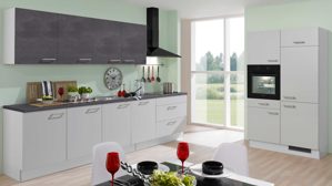 separate Hochschränke für Backofen, Kühlschrank und Vorräte, Länge ca. 120 cm