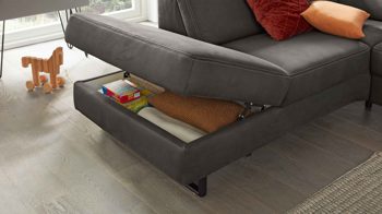 Die Aufklappfunktion ist ein praktischer Funktions-Mehrpreis für Elemente aus dem Modulmaster-Polsterprogramm MM-ZE1131. Sie bietet innen klassisch-weiß beschichteten Stauraum für Wohntextilien, Spielsachen und andere Gegenstände. Eingelassene Lüftungsschlitze sorgen für eine gute Belüftung. Zudem begeistert der Rasterbeschlag, der bequemes Öffnen und Schließen ermöglicht.
