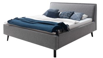 Das Polsterbettgestell Frieda mit Bettkasten verkörpert modernen Komfort. Mit dem grauen Stoffbezug und den schwarzen Holzfüßen präsentiert es sich elegant und gemütlich designt. Die Bettseiten sind genauso wie das Polsterkopfteil glatt bezogen. Letzteres ist eine angenehm weiche Rückenlehne, wenn Sie abends im Bett vor dem Schlafen noch entspannt in Ihrem Buch lesen oder fernsehen möchten.