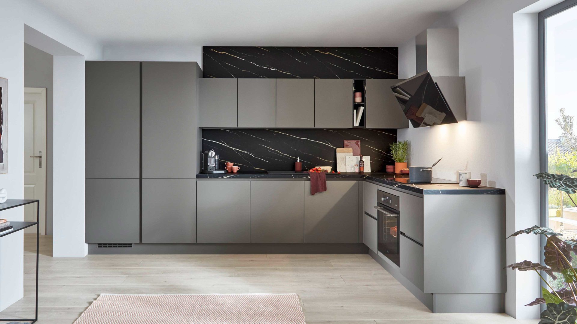 mattes Taupegrau und dunkelgraue Griffmulden